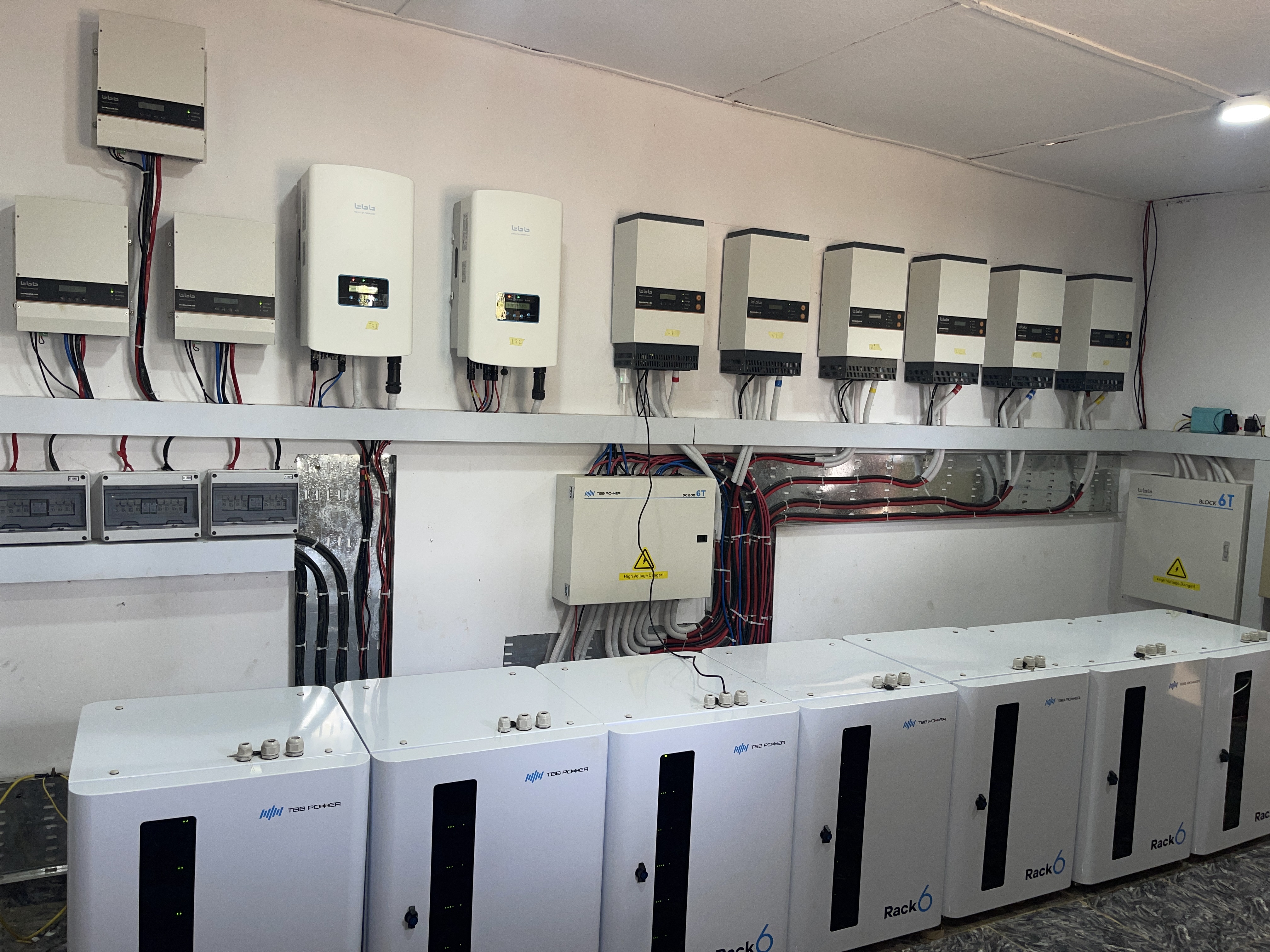 6 units of 8kW TBB Kinergier Pro inverter chargers, featuring high-efficiency up to 96%, are the key modules in this project. Combined with PV inverters, the system directly uses PV energy to power household loads at a higher efficiency to secure the daytime intensive energy consumption. An average daily generaiton of 180kWh can be achieved to power the whole villag. Coupled with Solar Mater MPPT solar charge controllers, the lithium battery storage system, which are mounted in the IP65-rated Power Rack cabinets, can be charged efficiently to restore the surplus energy generated during the day and discharged when the sun isn’t shining - so the villager won’t be left in the complete darkness at night ever again! On top of that, Kinergier Pro can regulate the output power of the PV inverters to prevent the batteries from being overcharged, significantly prolonging the battery life.