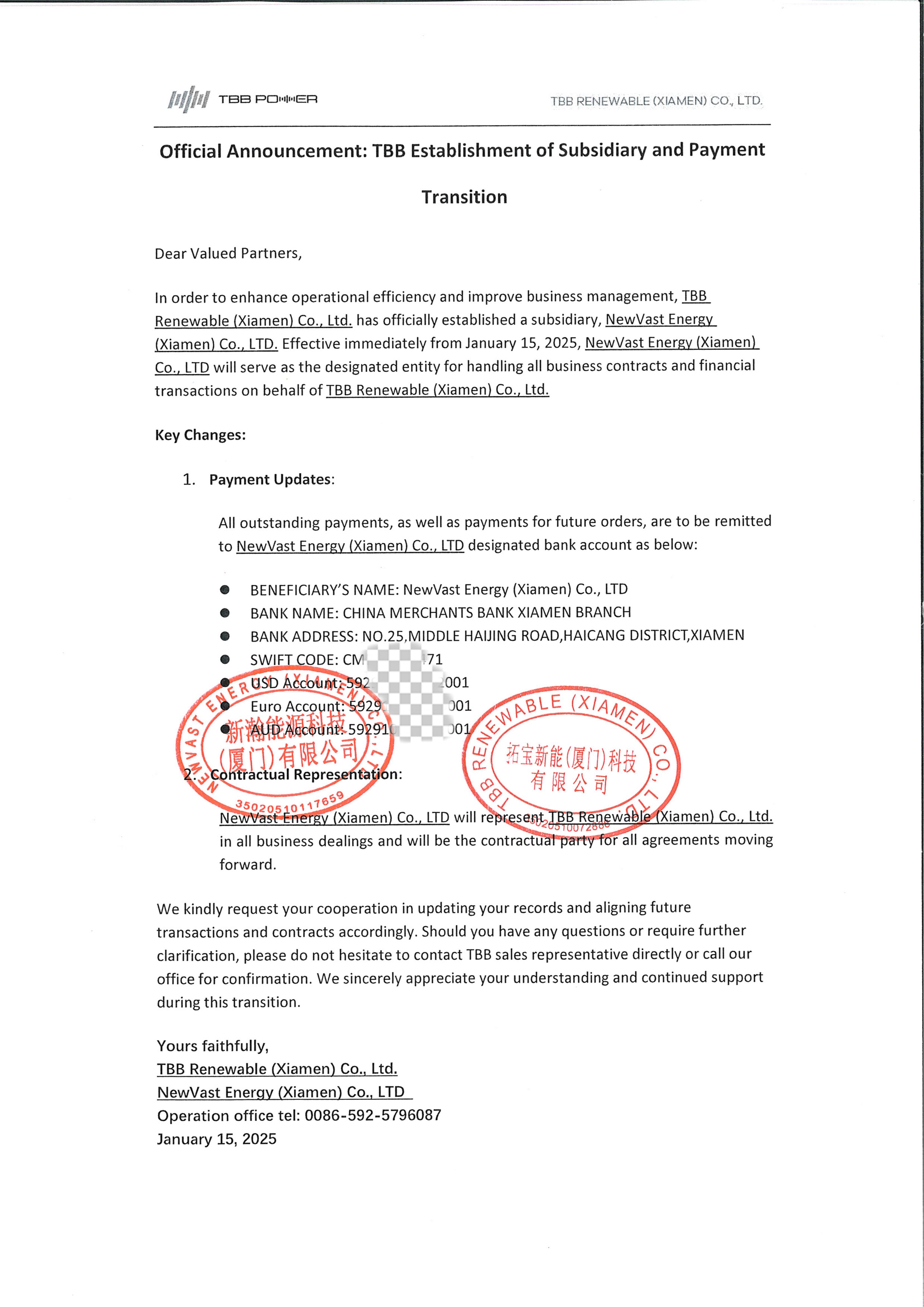 TBB POWER provides comprehensive service and support to you to help you grow and achieve optimal satisfaction.
