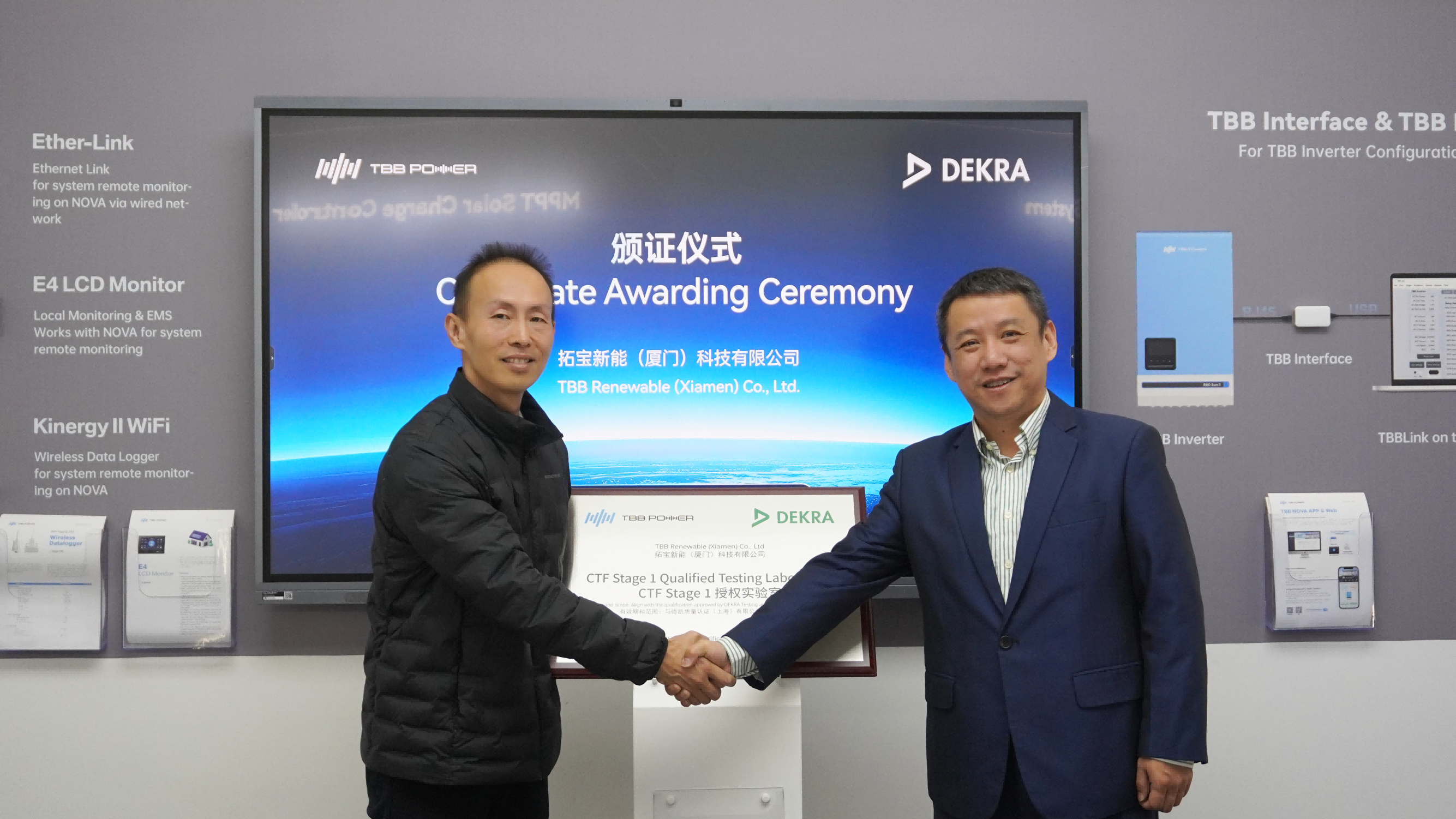 The DEKRA MTL accreditation is a testament to TBB Renewable’s technical expertise, quality management system, and professional testing capabilities. With this certification, TBB’s laboratory is now authorized to conduct independent product testing under DEKRA’s supervision, issuing DEKRA-recognized test reports. This will significantly shorten the product certification process, enabling faster market entry for TBB’s renewable solutions.